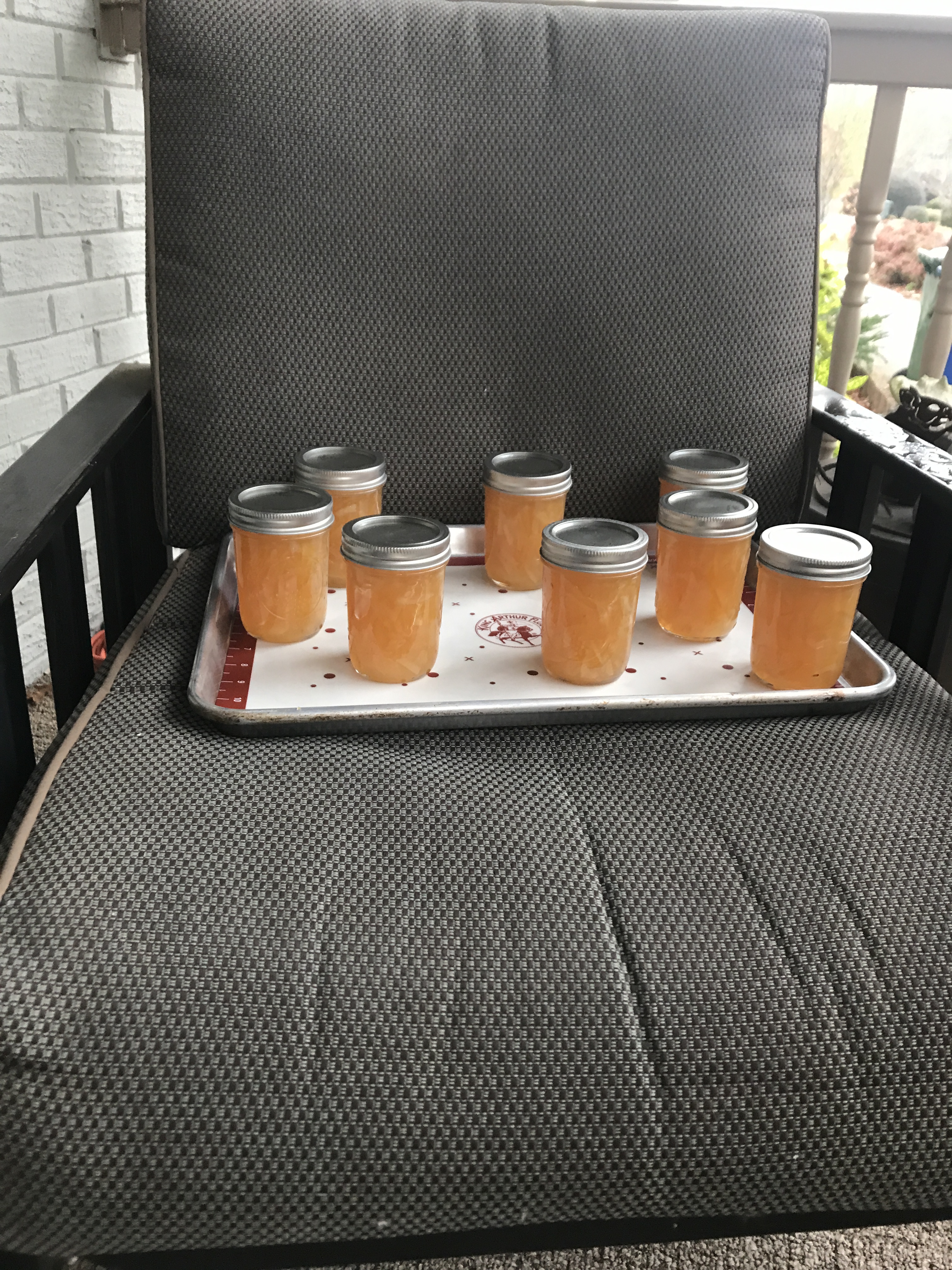 In keeping with my picking up hip pandemic hobbies well after their hipness has expired, I turned this bounty into marmalade in November and December. Not that insipidly sweet stuff with minimal flavor that glazes green beans and gets smeared across biscuits in households other than mine. This is marvelous stuff—tangy-sweet with just a hint of bitter, LEMON in all caps.