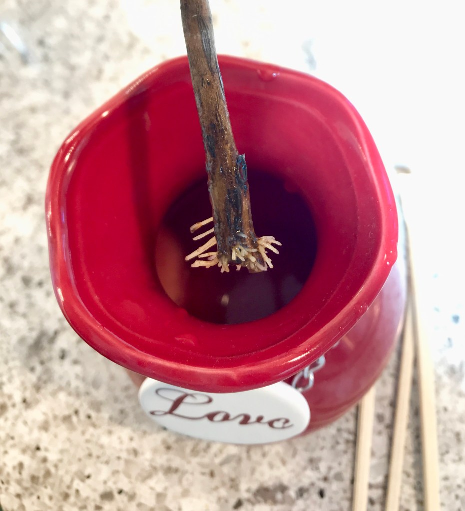I had one scare when mold or mildew grew on the stem, but gently wiping the mold off seemed to take care of the problem. Still, probably a hint that it was time to move this little survivor from the vase to a pot so that it would have a chance to grow for real.