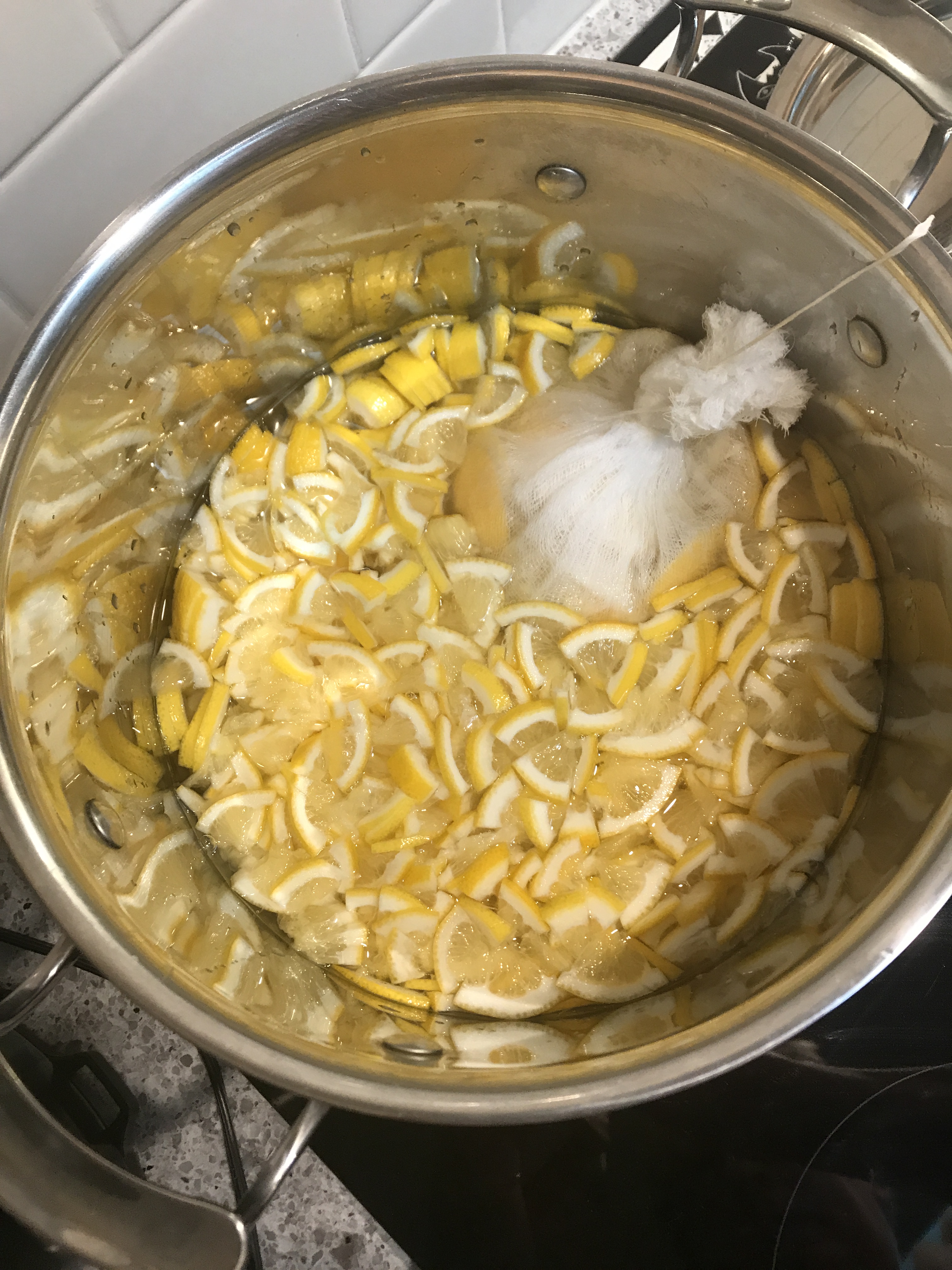 In keeping with my picking up hip pandemic hobbies well after their hipness has expired, I turned this bounty into marmalade in November and December. Not that insipidly sweet stuff with minimal flavor that glazes green beans and gets smeared across biscuits in households other than mine. This is marvelous stuff—tangy-sweet with just a hint of bitter, LEMON in all caps.