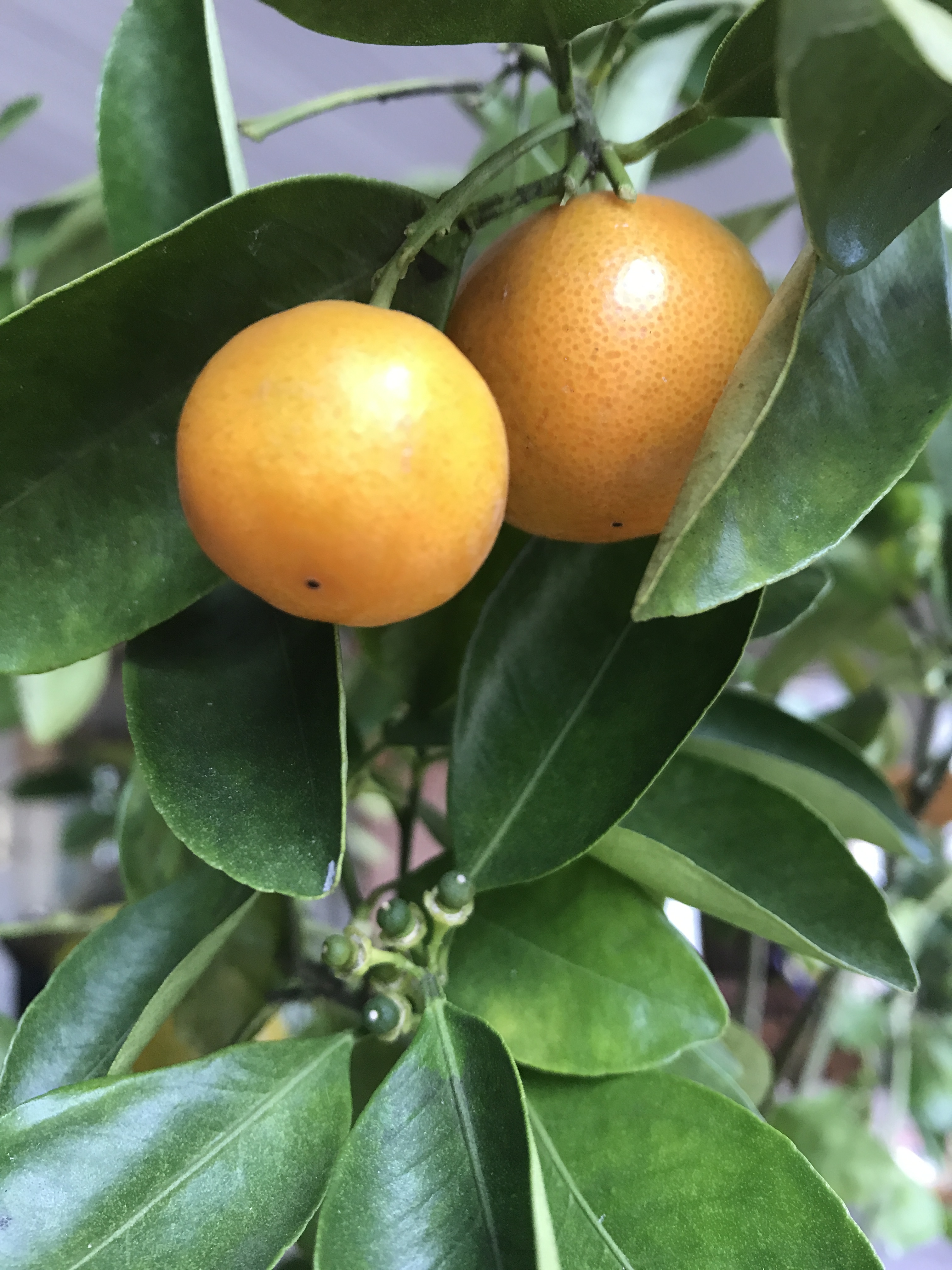 The forecast is good—no hard freezes for the week—so the potted citrus grove was on the move today, back outside for an afternoon of sunshine, a chance of a good rain soaking tonight and tomorrow morning, and a mild week ahead. A $30 Harbor Freight hand truck has paid for itself many times over just for moving them in and out. The south-southeast facing corner of my back yard is its own little microclimate, always a few degrees warmer than anywhere else, and they are happy there. All three are blooming too, and when the bees and other bugs wake up hungry this week, they’ll be happy to find the flowers. Yay, pollinators!