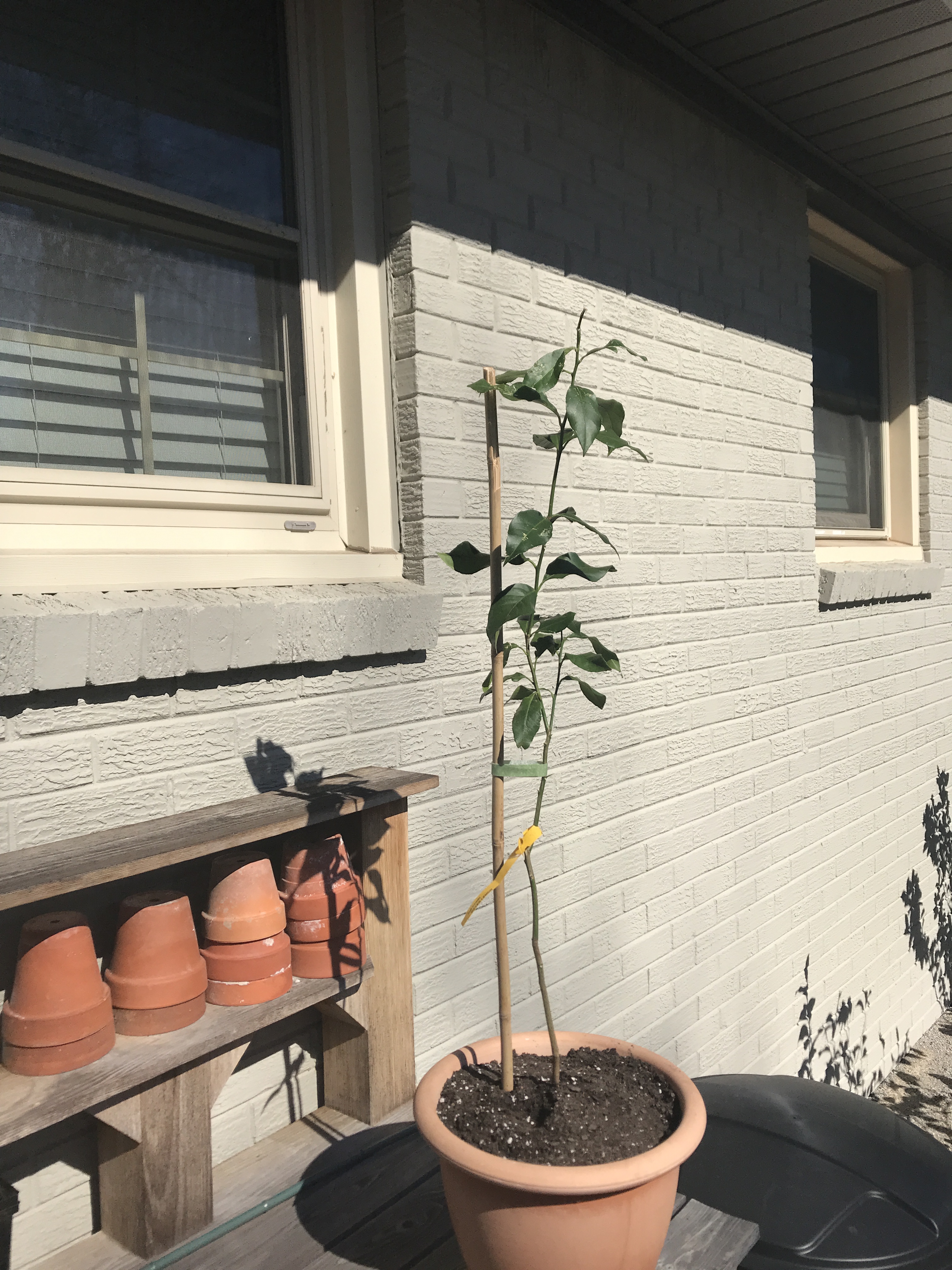 Growing citrus in USDA Growing Zone 7 is a silly exercise, really. In the winter I leave them outside as long as the temps don’t go below 27F/-3C, but when the temperature roller coaster starts, I’m hauling them into the sunporch and back out again because they are much happier outside than in. So, after this winter’s marmalade successes, I ordered a second Meyer lemon, of course. I have a hand truck.
