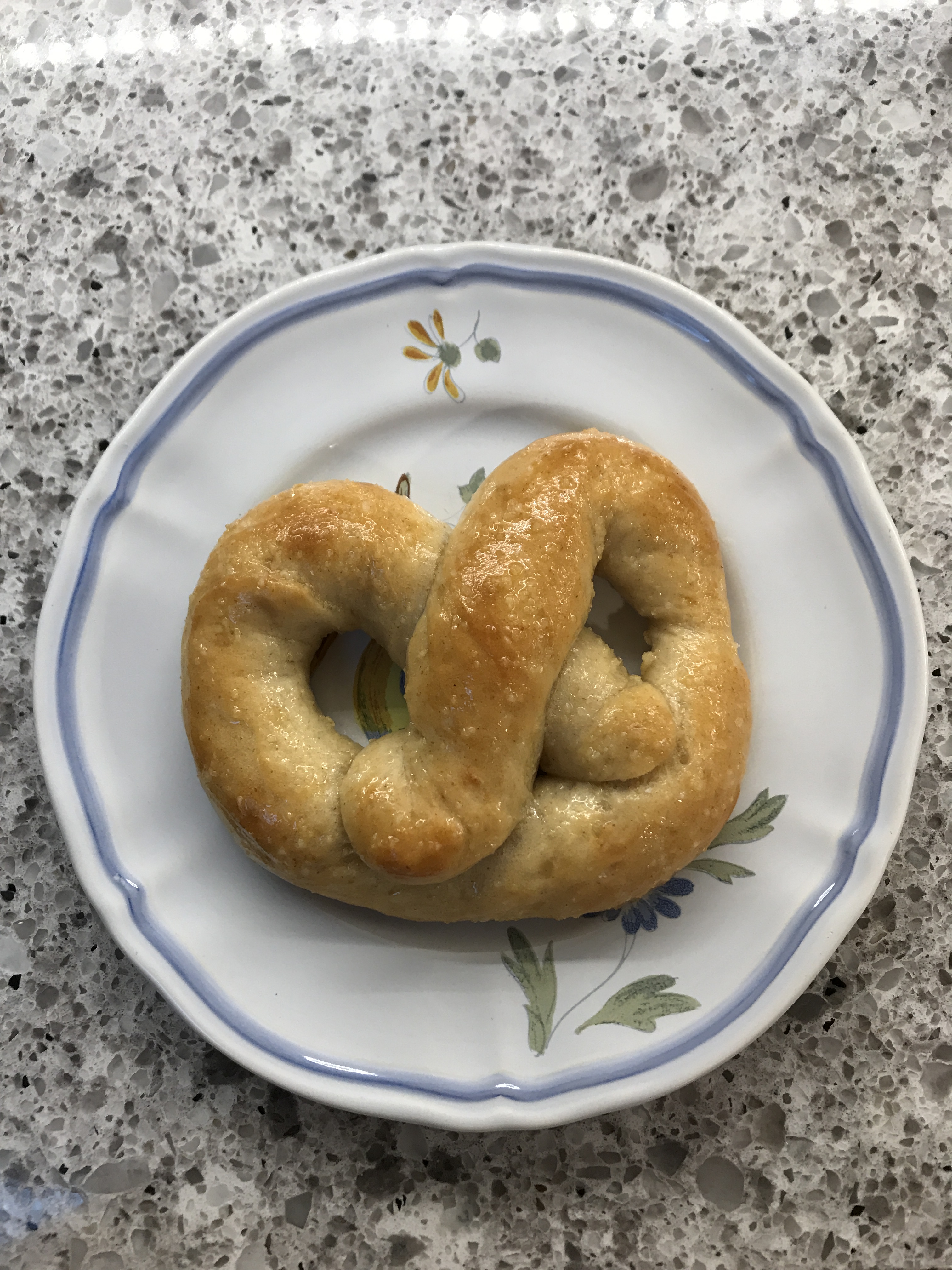 Lately I’m getting sick of pizza every. single. Saturday. night. Kiddo likes her routine, but sometimes I’m just over it. But Nathan still needed a feeding, and throwing away the discard is anathema to me. I also can’t throw away a chicken carcass without making a batch of chicken broth first, but I digress. So instead I made pretzels with the discard, and they are almost as easy as pizza dough. A few adjustments: I subbed one cup of 2% milk for the water and nonfat dry milk, I skipped the diastatic malt powder because I didn’t have any and used sugar per the recipe, I sprinkled them with Diamond Crystal kosher salt because I didn’t have pretzel salt, and I brushed them with garlic butter at the end. My shaping skills are, ahem, inconsistent, and the recipe does make a dozen, but we ate some before I remembered to take a picture.